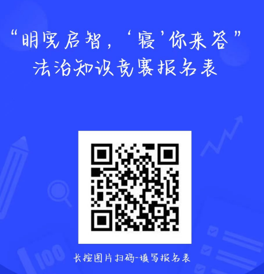 1.报名法治知识竞赛的同学请加入QQ群:947132873,备注“法治竞赛-学院-姓名-联系方式”,12月9日前扫描报名码进行报名。