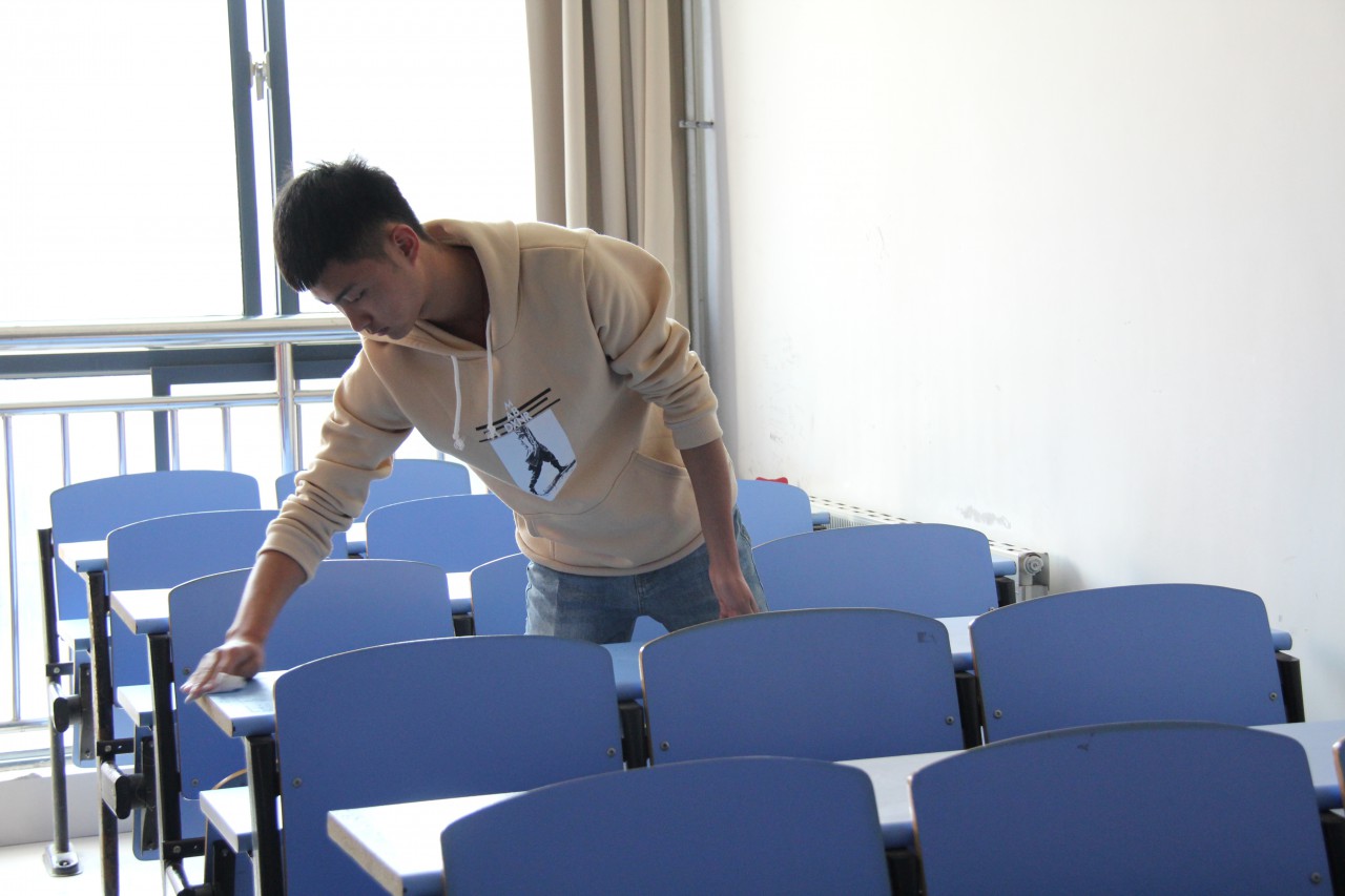 为美化校园环境,增强大学生爱护桌椅、保护环境的意识,在大学生志愿者联合会的组织下,土建学院青年志愿者协会及2018级各班志愿者于10月21日在J7教学楼开展了课桌文化清理活动。