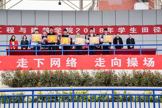 为落实“三走”行动,促进个人全面发展。4月14日,土建学院在风雨操场成功举办2018年学生田径运动会。出席开幕式的嘉宾有学院党委书记张东、院长乔卫国,运动会总裁判长、体育学院教学党支部书记张效江、副总裁判长、体育学院教师王汝尧,学院党委副书记郝亮,副院长李松柏,院长助理王刚老师、李朋老师以及党政办、教科办、各系所负责人,学院团委书记于娜主持开幕式。