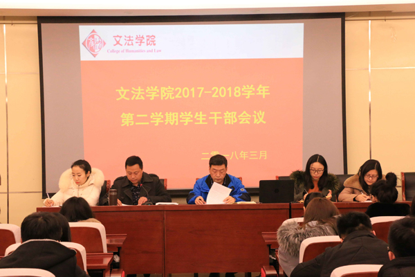 3月4日下午,文法学院召开新学期学生干部会议。党委副书记兼副院长陈福卫、团委专兼职辅导员、学生助管、学院各班级和各学生组织主要学生干部参加会议,会议由院团委书记顾家彪主持。