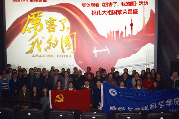 3月13日下午,数学学院党委开展了“不忘初心、牢记使命”主题教育,组织全体教职工、学生党员赴星轶影城集中观看大型红色纪录片《厉害了,我的国》。