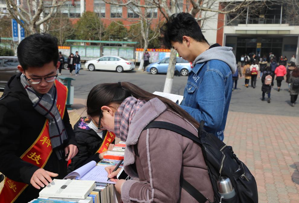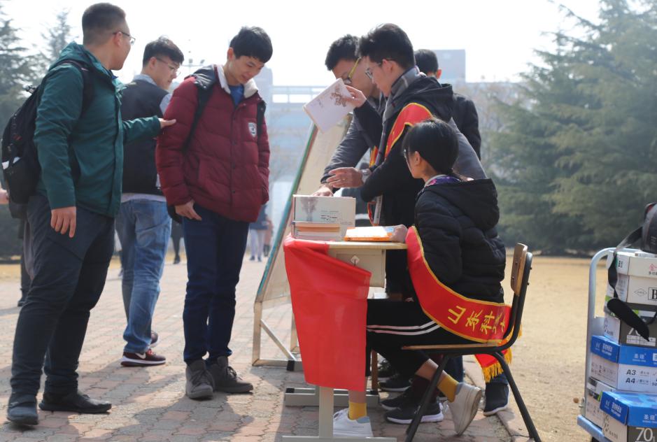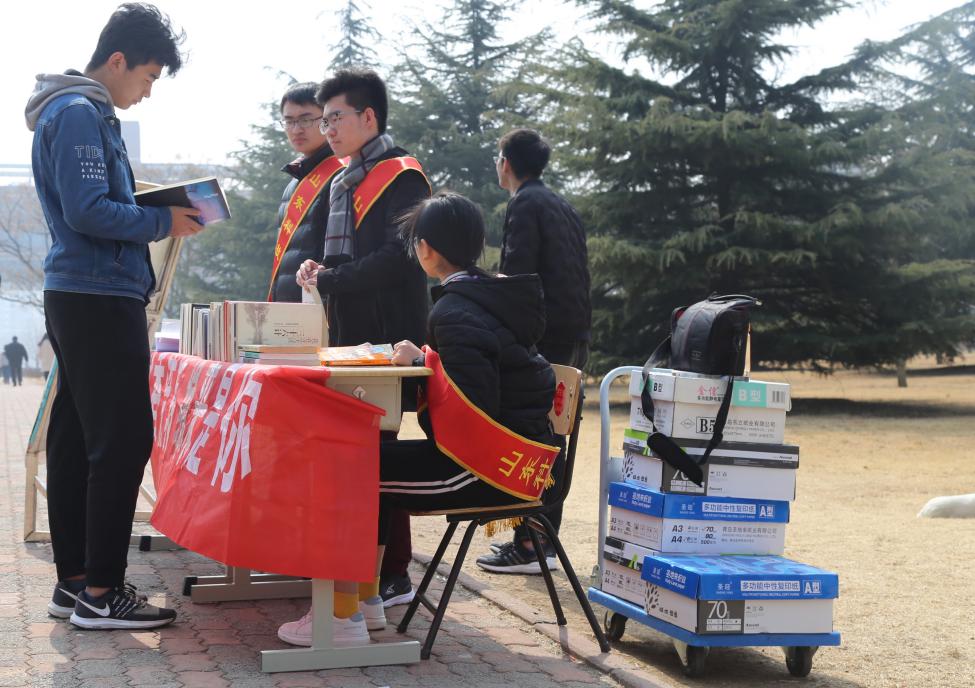 近日,由矿业学院团委主办、青年志愿者协会承办的“以书会友”文化活动在学苑餐厅南门举行。