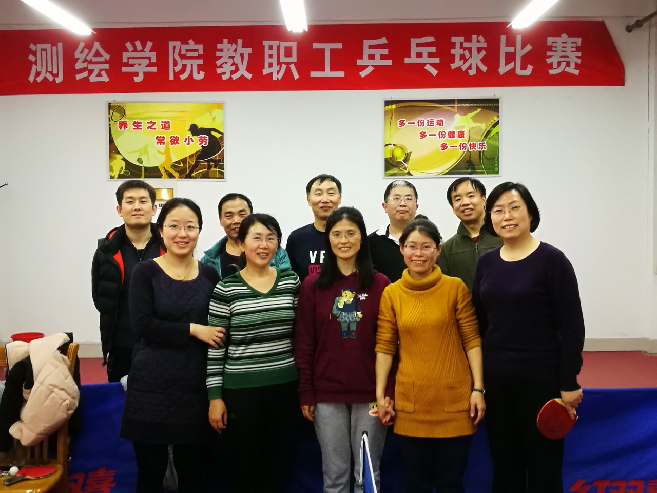 为丰富学院教职工业余生活,增进教职工间的交流,提高大家积极参加体育运动的热情,测绘学院教职工乒乓球赛于2017年11月在六号楼教职工活动室举行。测绘学院和海洋工程研究院教职工参加了比赛。