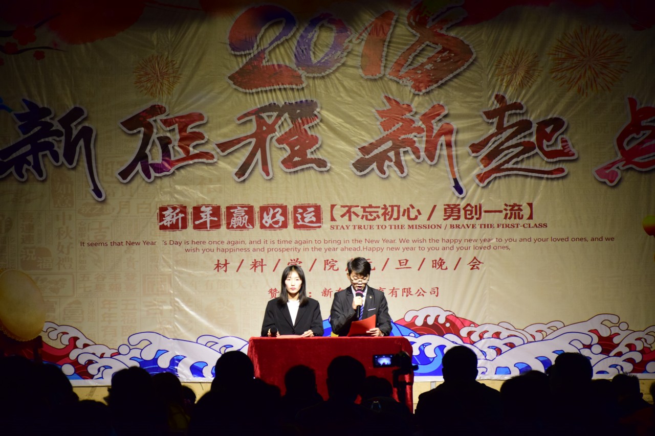 12月23日,材料学院在大学生活动中心二楼举办了“新征程,新起点”2018年元旦文艺演出。院党委书记王晓东,党委副书记、副院长韩明臣,副院长李敏、李辉平,金属系曹梅青,无机系主任姚树玉、展晓元、张伟伟、丁建旭、王新震,高分子系何海峰、刘蕾,材化系于青,实验中心主任魏文阁,院团委书记马韶霞,团委辅导员王凌云、薄艳艳等老师,和同学们一起观看了文艺演出。