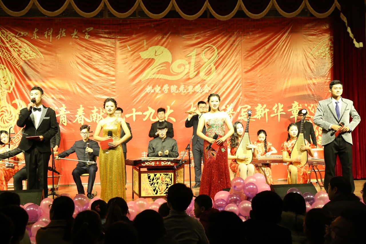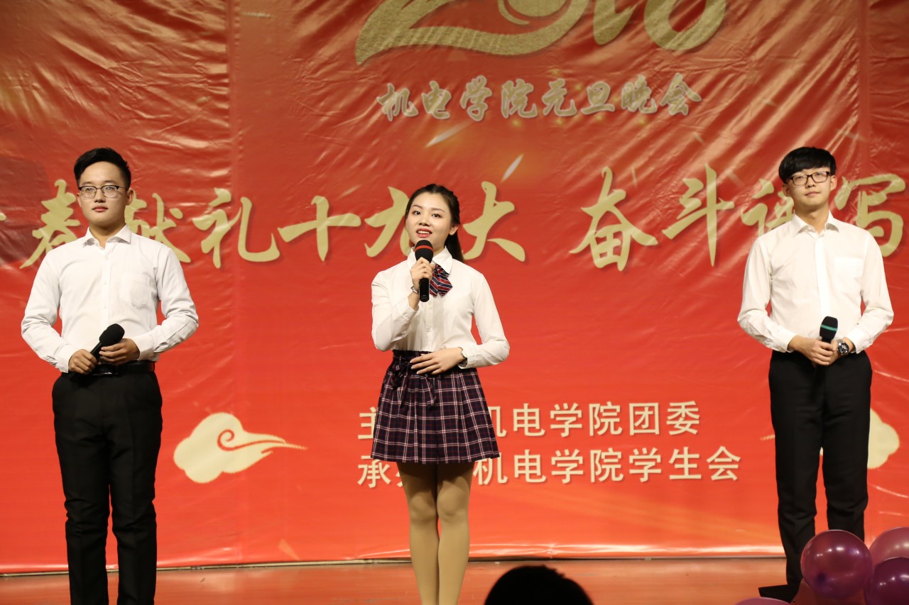 一曲家喻户晓的《春节序曲》为晚会拉开帷幕,琴声嘹亮,国粹悠扬。伴着京胡乐声,歌曲《悟空》迅速将节目现场氛围点燃。随后,在回忆录的描述下,《时代秀》年代走秀表演带给观众全新的体验,回忆过去,感受现在;凄美的伴奏声飘荡活动厅时,一出唯美的古典爱情舞蹈《锦鲤抄》缓缓呈现;诙谐幽默又饱含深情,小品《永远璀璨》承担了全场笑点同时也戳中了观众的泪点,赞颂了老师无私奉献的精神。随后,各团委老师亲临舞台,共同演唱了热情洋溢的歌曲《中国味道》,现场气氛盎然,掌声阵阵。中场环节晚会邀请了taptap点点体育学生会主席团与兼职辅导员,展开了一场抢椅子大战,并在游戏结束后为失利者送上了黑暗料理。晚会下半场,《追剧进行时》歌曲串烧首首经典,一呼百应;朗诵《那些年我们好像很有钱》发人深思,使现场气氛变得严肃郑重;现代舞蹈串烧又使气氛回温,相声《成长的烦恼》和交谊舞《激舞飞扬》轻松活泼,将晚会拉至高潮。一曲《共筑中国梦》送给祖国,弘扬十九大;一首《最美的星光》承接尾音,歌唱机电风。