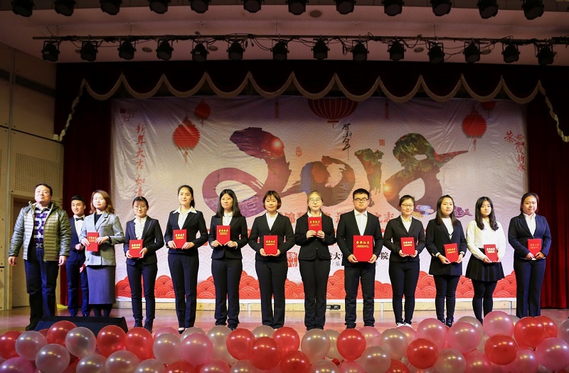 此次晚会还对“校十大优秀学生”路庆波以及外国语学院2017年度“十大优秀学生”张晓晨等进行表彰,由院党委副书记马海超为优秀学生颁发证书及奖品。