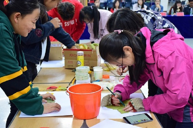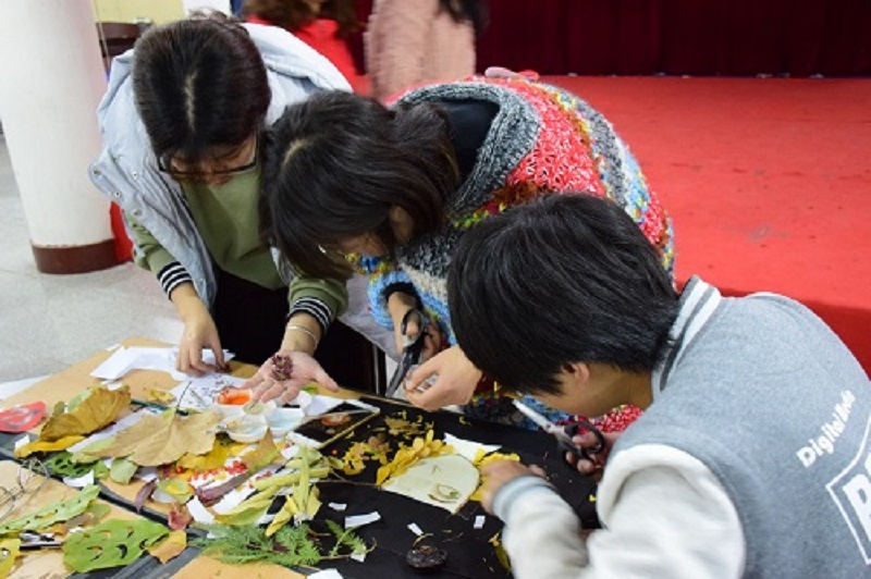 11月12日,材料学院举办“留住最美的季节”落叶作画大赛。校学生会候欣园、材料学院学生会彭玉洁及各兄弟学院学生会宣传部部长作为评委出席了比赛。