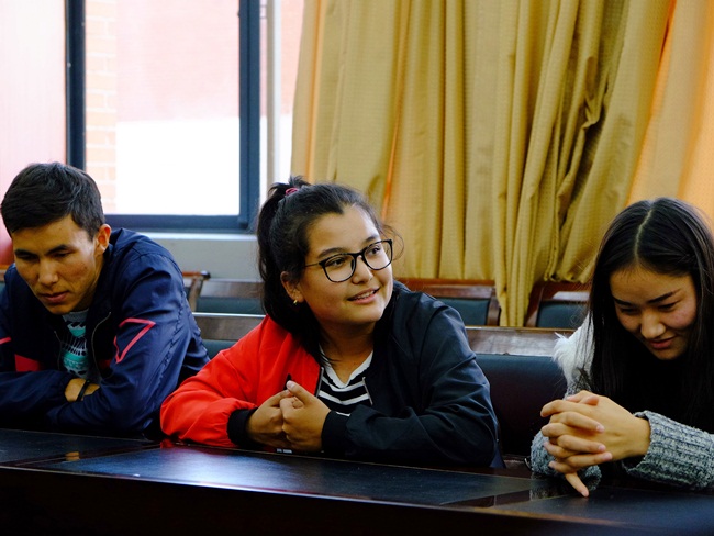 巴克尔老师认为,做一名合格的大学生,不只是要好好学习,更要热爱国家和集体,要有坚定的立场和辨识能力。巴克尔老师还鼓励同学们思想上要开放,多关注国家政策。阿迪娜老师对学校、学院给予新疆同学们成长成材的支持与资助表示感谢并希望同学们能够相互督促、理解与支持,不断充实自己,在各方面争取进步。