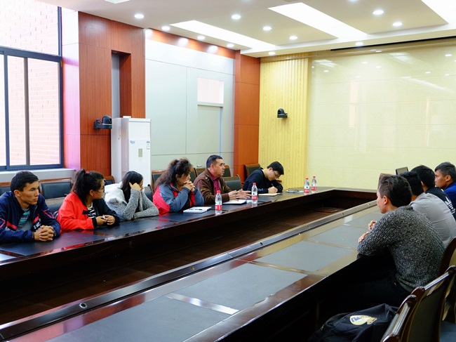 10月24日下午4时,在我校学生工作处和校团委挂职锻炼的新疆籍老师巴克尔·萨力和阿迪娜·赛福丁应邀参加在地科学院会议室举办的新疆籍少数民族学生座谈会。座谈会由院团委书记汪国庆主持,学院部分新疆籍学生到场。