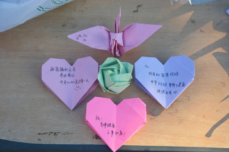 迎着晨风,伴着朝阳,同学们在青年志愿者协会成员的带领下,参观了精心设计的志愿活动展板,并踊跃把自己对敬老院老人的祝福话语留在无数个亲手折下的爱心、纸鹤里。成员们热情地为同学们介绍了我院在历来志愿活动中取得的成绩后,大家都感慨自己能成为一名山科学子无比自豪,同时也表达了自己想积极投身志愿活动、奉献爱心、贡献力量的意愿。