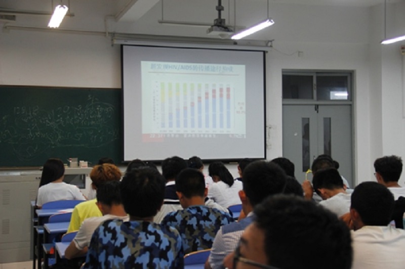 活动开始,许英顺院长向大家简单介绍了艾滋病的概念、发病原因、传播途径以及艾滋病防控的重要意义。随后,孙晓娟教授为大家详细讲解了艾滋病的传播途径,阐述了艾滋病在大学校园患病率逐年上升的原因,为新生普及了防控艾滋病的知识,提醒同学们养成良好的生活习惯,呼吁大家从道德角度做好自身的行为规范。通过她们声情并茂的讲解,防控教育变得生动起来,使得同学们对艾滋病有了更积极的了解与感悟。之后,同学们观看了“校园里危险的艾情”,并填写了艾滋病调查问卷,对艾滋病的知识进行巩固和深化。