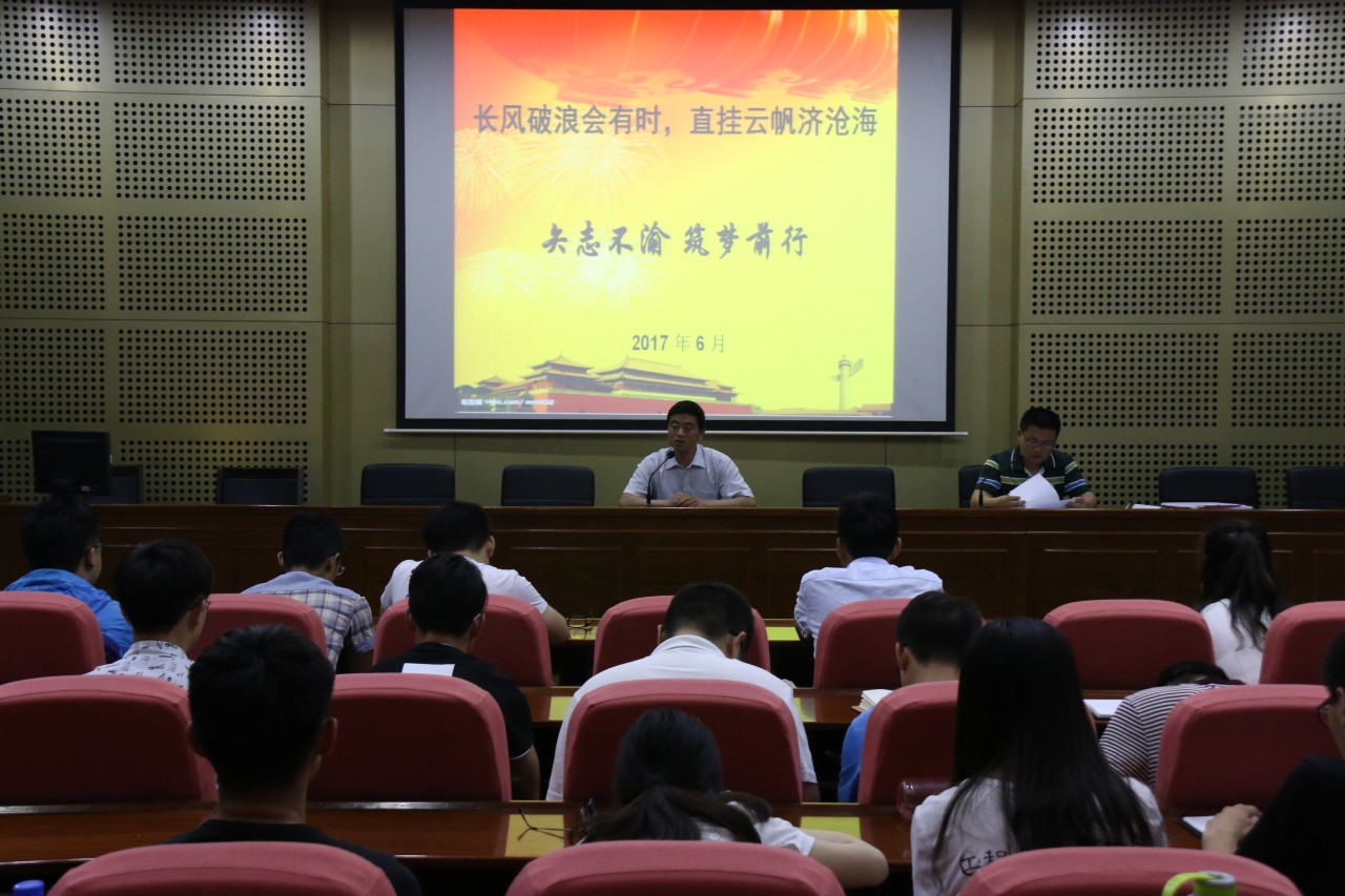 6月9日,矿业学院在101报告厅召开毕业生党员大会,党委副书记兼副院长穆玉兵同志为全体毕业生党员做了大学生涯最后一次党课。团委老师刘勇、周尚涛和学院全体本科生党员参加会议。