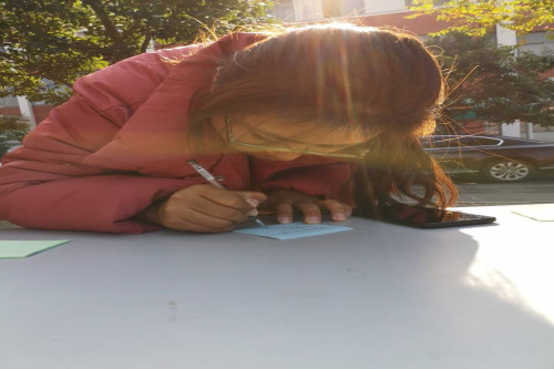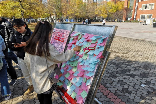 活动还未正式开始,留言板前便已聚集了一批前来进行留言、签名的同学。同学们自觉排队,现场工作人员也积极进行着组织协调,使得活动现场秩序井然,留言展板上也逐渐被各式各样的留言纸条贴满。尽管已是深秋,寒风阵阵,但在现场前来留言的同学仍越来越多。他们纷纷拿起纸笔,写下了自己对改革开放的认识与理解,也写下了自己对祖国、对党的美好祝福与期待。这些留言中,有的辞藻华丽,文采斐然;有的语句简洁,用词朴实。不论外在的表达形式如何,这些留言都是字字真情,充满了对祖国的一片赤忱之心和对光明未来的坚信。