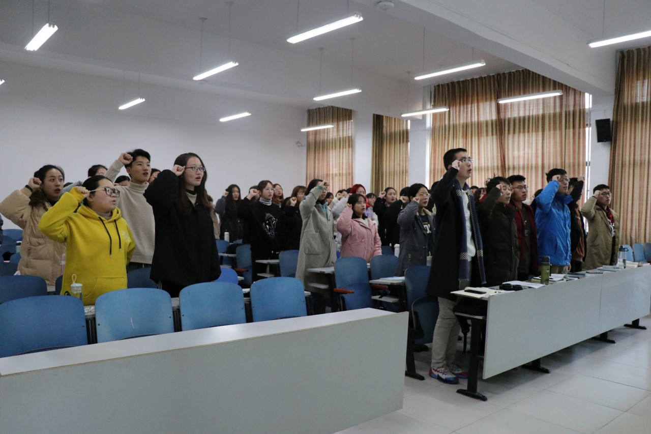 各班同学在班干部的带领下庄严肃立,右手握拳,“我是中华人民共和国公民!我庄严宣誓:忠于我的祖国和人民,遵守宪法和法律,履行公民的责任和义务,践行社会主义核心价值观,做一名爱国、敬业、诚信、友善、守法、知礼的中国公民!”宣誓完毕后开展了宪法诵读活动。大家表示作为新时代的大学生,要懂得尊法、学法、守法、用法,在学习宪法的过程中与时俱进,不断更新对宪法的认识、全面深刻理解宪法的基本原则和精神,维护宪法权威,履行宪法赋予的权利与义务,为奋力推进新时代宪法的实施工作贡献力量。