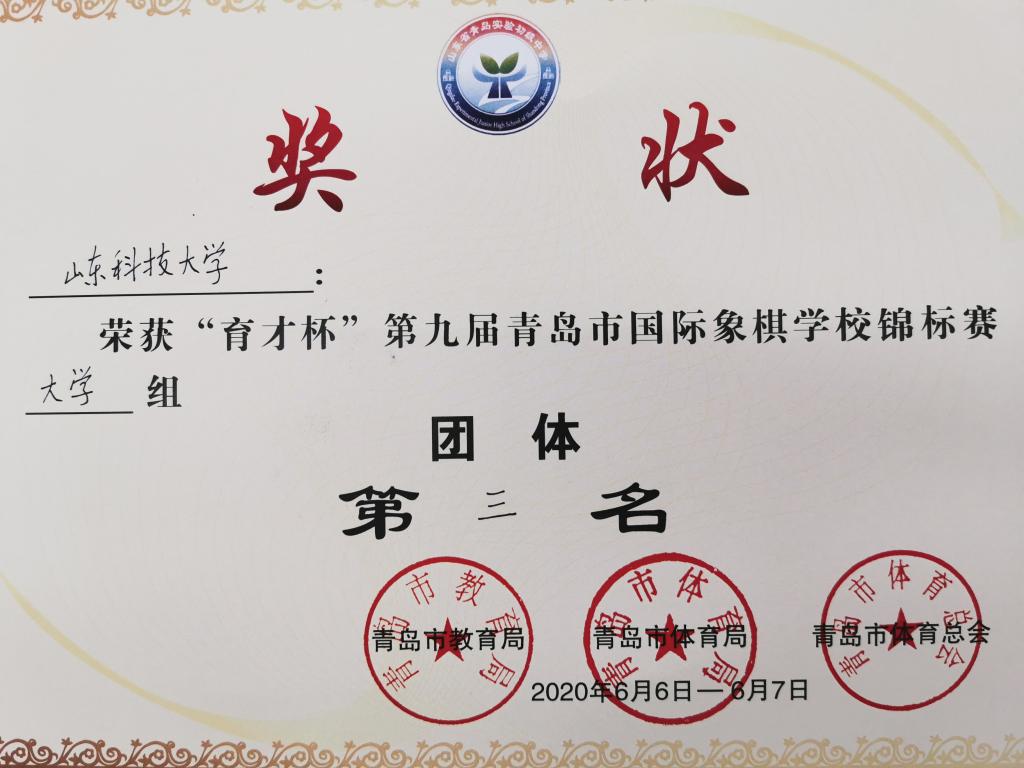 本届国际象棋学校锦标赛得到了学校高度重视,体育学院精心组织,积极备战,选拔7名同学积极参加比赛。最终,经过网络平台上的激烈角逐,凭借队员们的出色表现,取得优异成绩。其中,文法学院2018级法学专业廖辰获得高校组个人第一名,交通学院2018级交通运输专业李玥祺获得高校组个人第五名,我校代表队获团体总成绩第三名。