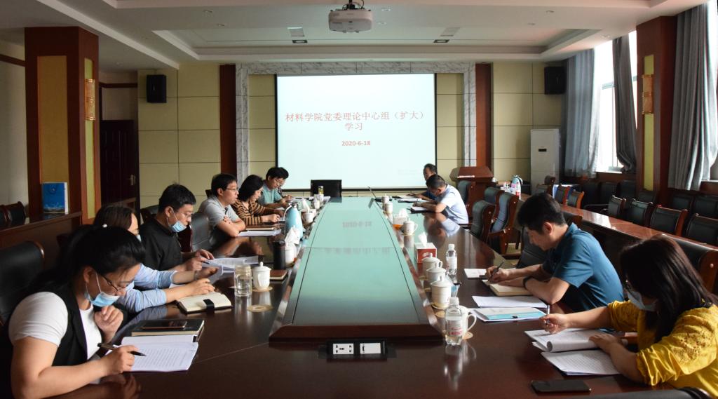 6月18日下午,学校政治理论学习督察组成员、学校党委办公室(学校办公室)副主任兼督查室主任杜军,宣传部张蕾老师到材料学院,对学院党委中心组(扩大)理论学习情况进行巡听督查。院党委书记申兆亮主持学习,院长崔洪芝及其他党委中心组成员和学院领导班子其他成员参加会议。