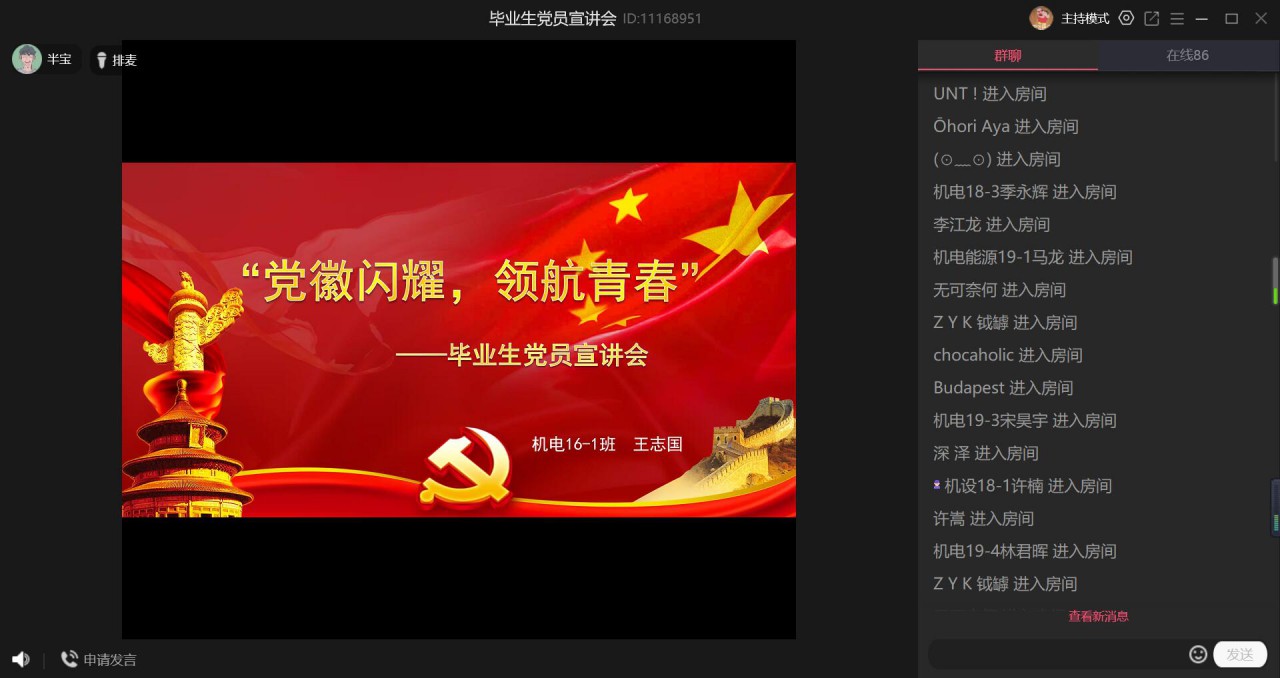 为提高学生党员党性素养,积极发挥优秀党员的先锋模范作用,进一步夯实理想信念,6月21日晚,taptap点点体育“党徽闪耀·领航青春”宣讲会在taptap点点体育报告厅成功召开,2020届毕业生优秀毕业生党员侯婧、董一霖、王志国、潘磊,与同学们畅谈党员使命、学习经验,本次宣讲通过“线上讲座+线下直播”双线进行,taptap点点体育入党积极分子参加宣讲会,院学生会副主席王秋瑞主持会议。