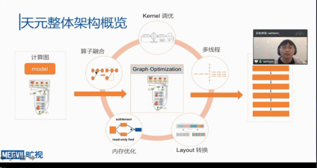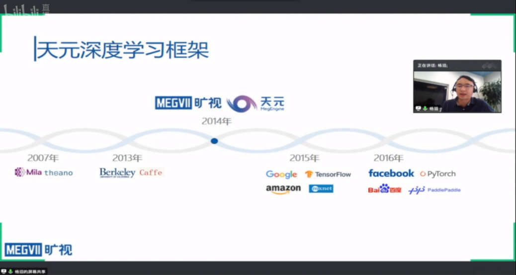 在报告阶段,杨滔详细介绍了天元深度学习框架的发展过程,讲述了旷视从2014年开始着手研发“天元”深度学习框架到现在逐步实现开源的过程。同时,介绍了旷视天元的总体架构,并介绍了天元四大优势和特点。最后提供了天元MegEngine社区资源,为大家提供开发者直接交流互动的机会。