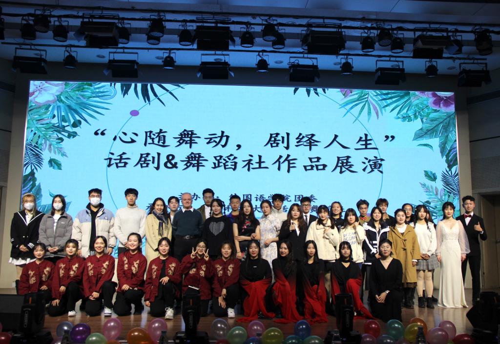 近日,外国语学院“心随舞动 剧绎人生”外文话剧展演于大学生活动中心二楼举行。学院团委书记田禹,外教Igor,辅导员教师杨柳、齐俊博观看展演。