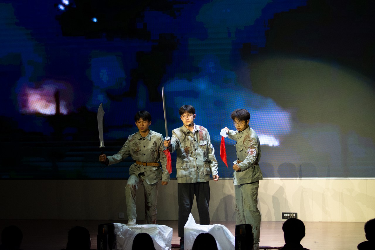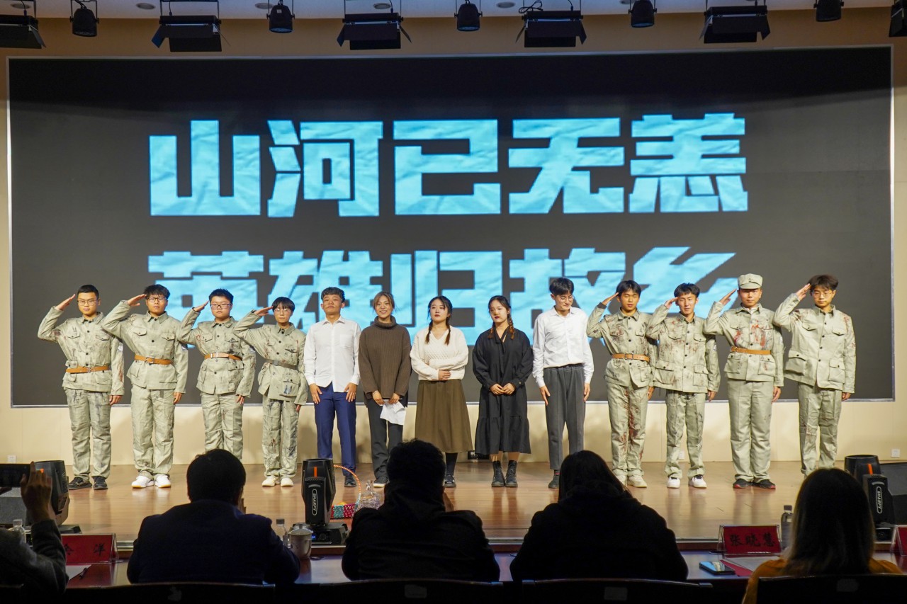 艺术学院组织学生根据抗美援朝的真实故事,改编排演了红色舞台情景剧《不忘》。