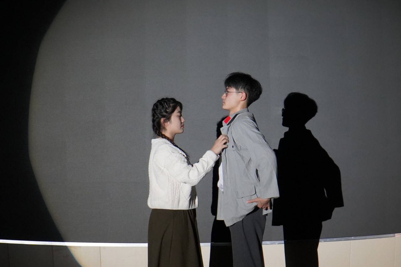视觉传达2021-1班的荆文娇同学在剧中扮演为民的妻子,她说:“一声令下为国献身,国家之下一切都是微小的。经历了这次排练和演出我真切地感受到战争年代的悲壮感情,和抗美援朝胜利的来之不易。”