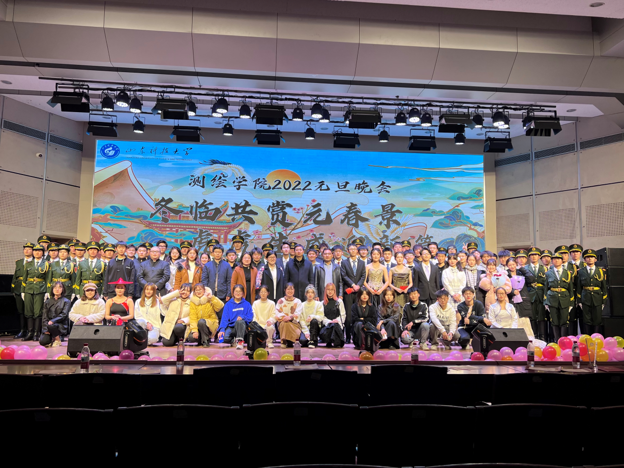 12月29日,测绘学院于大学生活动中心举办2022年元旦晚会暨2021年十大优秀青年学生及单项奖颁奖典礼。测绘学院院长阳凡林、党委副书记兼副院长吴昊、副院长徐莹、副院长刘尚国及团委全体