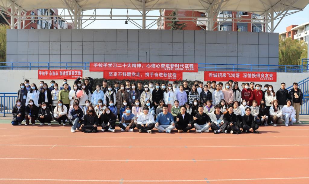 为深入学习宣传贯彻党的二十大精神,增强组织凝聚力,11月6日,安全学院联合经管学院、文法学院,于风雨操场举办“携手学习二十大,共同奋进新征程”联谊活动。