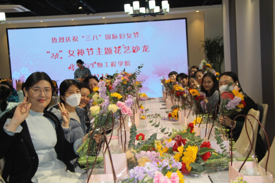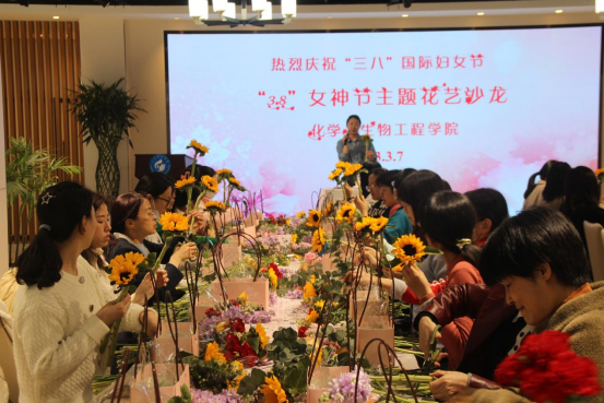 随后,学院工会举办了手提花盒插花花艺沙龙活动。插花前,花艺师介绍了花卉品种、插花审美、插花造型、色彩搭配、鲜花花语等内容。女教工们在花艺师现场示范和指导下,结合个人审美,进行插花创作。插花过程中大家互相交流、互赏花艺,享受自己动手创造美丽的快乐。本次插花活动用花木来抒发女教职工的高雅情怀,以花感人,以花育人,培养了女教职工知美、爱美、会美的美好生活情趣。老师们纷纷表示活动贴心、用心、有品位,这个节日过得太开心太幸福了。