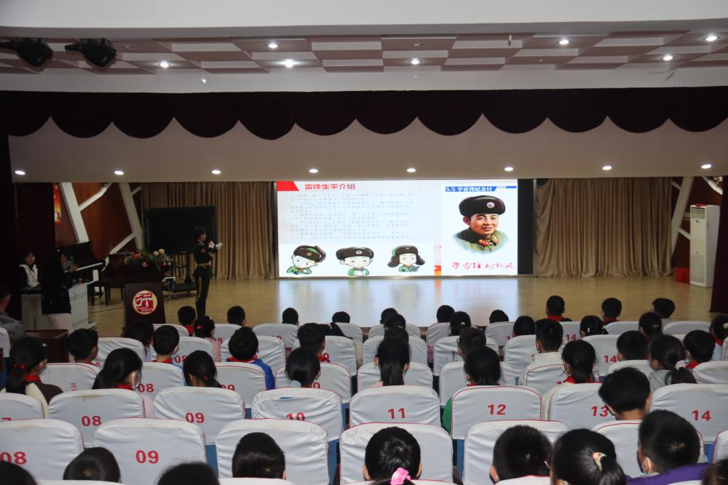 宣讲开始,在国旗护卫队队员孔依凡的带领下,同学们一起回顾了雷锋同志的生平。通过讲解PPT和播放视频的形式,孔依凡向孩子们生动形象地讲述了“小小的雷锋图书馆”“小小拖拉机手”等故事,将雷锋精神的种子播撒在孩子们心间。