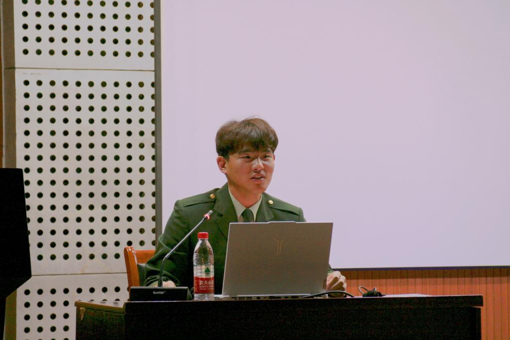 分享会伊始,苏久钊从当兵经历、入伍政策、所得收获三个方面展开分享,详细地介绍了他军旅生涯中“酸甜苦辣咸”的百色经历。他用亲身经历告诉同学们,军营是培养人才的大学校,是锻炼人才的大熔炉。此外,苏久钊还对当下大学生入伍优惠政策、应征入伍流程、入伍发展前景与退役保障、应征入伍条件等方面作了详实的讲解。最后,他鼓励同学们把热血挥洒在实现“强军梦”的伟大实践之中,书写绚烂无悔的青春篇章。