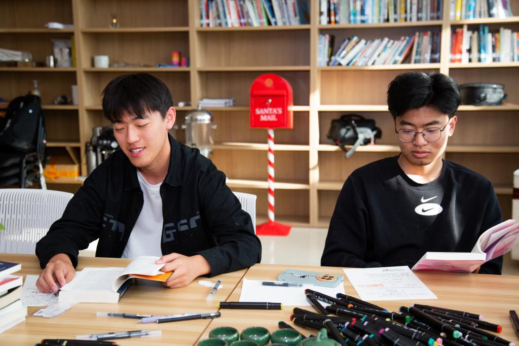活动中,同学们在现场挑选自己感兴趣的心理书籍进行阅读,如《天才在左疯子在右》、《大五人格心理学》等,伴随着轻柔的舒缓音乐,同学们沉浸在书海中,享受阅读带来的放松和愉悦。同时,现场工作人员为参与者分发纸张、画笔、贴纸等材料,让同学们在阅读的过程中,随心随意制作属于自己的阅读手账,将书中有趣的段落、自己的感悟写到纸张上,体验阅读与制作的乐趣,记录这一刻的美好。