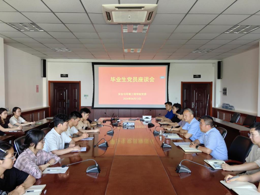 6月13日,安全学院于J9-223会议室召开2024届毕业生党员座谈会,学院党委书记张恩生、党委副书记兼副院长王建友、团委书记张娜与25名优秀党员代表一起畅谈成长感悟,共话青春梦想,共叙使命担当。会议由党委副书记兼副院长王建友主持。