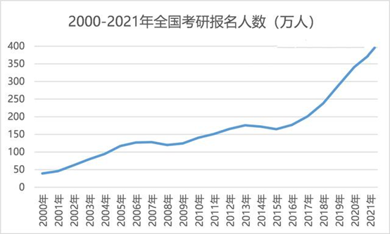 人数越来越多。2021年考研报名人数继续呈递增趋势。2021年考研报考人数377万,较2020年341万增加36万,增幅10.6%,报考人数再创历史新高。照此趋势,2022年报考人数将会敲开400万的大门。