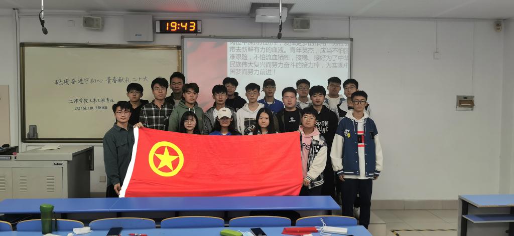 土木工程2021-1班将思想建设放在首位、以争创“先进班集体”为奋斗目标,以“提高青年综合素质,提升班级凝聚力”为理念、心系国家事,肩扛国家责。认真学习党的基本知识、拥护中国共产党的领导、政治立场坚定。